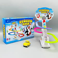 Turn playtime into an adventure with the Exciting Penguin Race Track Set – a delightful toy that features adorable penguins climbing stairs and sliding down a colorful track, all set to cheerful music and flashing LED lights.